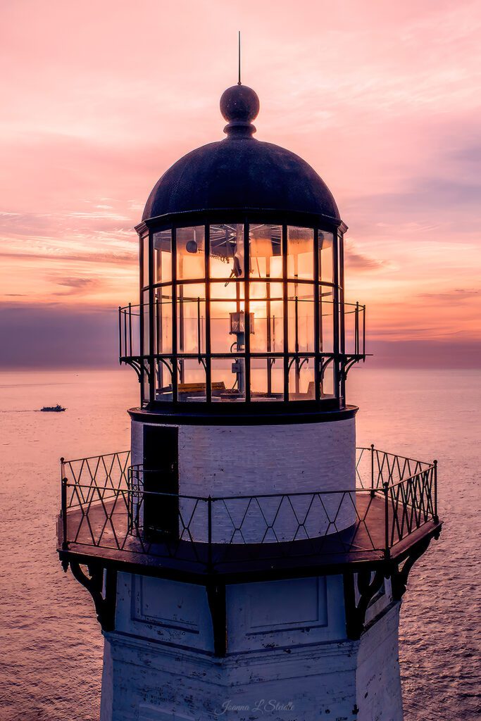 Sunrise drone capture of the historic Montauk Lighthouse lantern room. One of the most