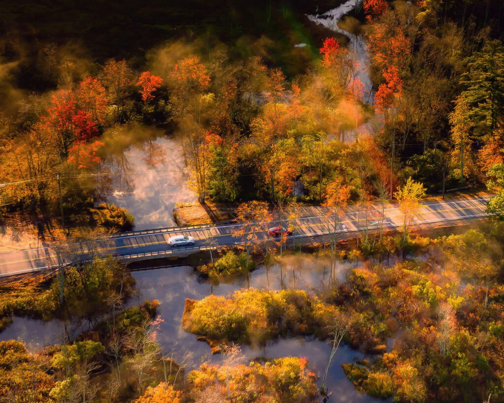 This is an aerial drone photograph taken somewhere along my travels in Massachusetts on a beautiful autumn morning. 2021.